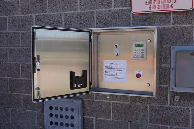 Each station is equipped with a stainless steel keypad and a coin acceptor. In order to meet the needs of the reservation and residents of Gallup, the stations provide 24-hour, uninterruptable access to potable water. Customers with accounts may use the keypad to enter access numbers and desired volumes, and customers without accounts can simply enter coins for a preset volume of water per coin.